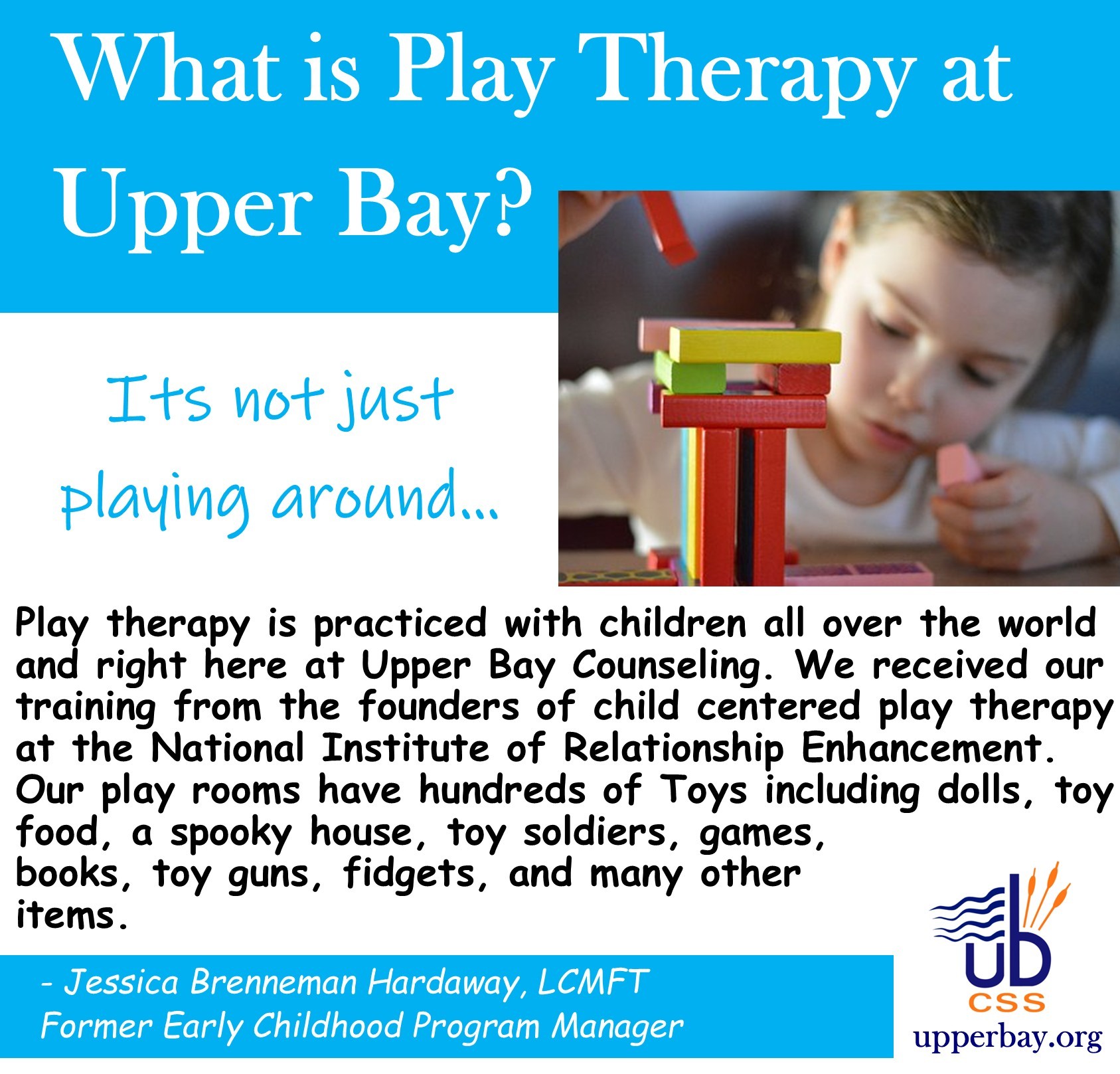 Upper Bay Counseling’s Early Childhood Services are available for children ages 2 to 5 years old. These services support healthy relationships, promote safe and healthy environments, and assist parents and caregivers in meeting the emotional and social needs of their children.